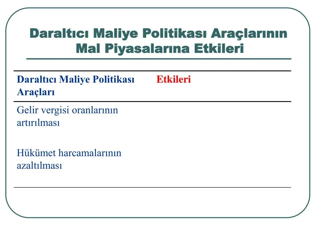 Hanehalkı Ekonomisini Etkileyen Mali Politika ve Etkileri