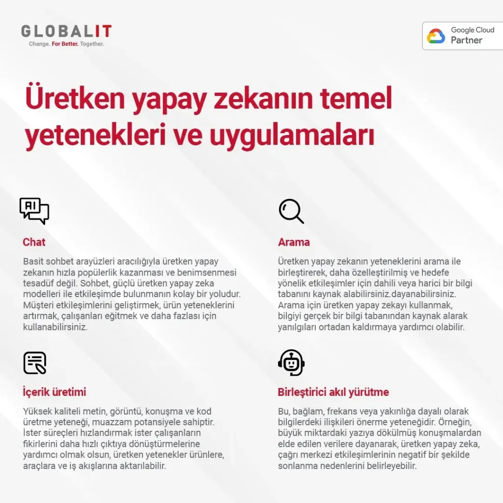 Yapay zeka ile iş süreçlerini hızlandırma, önceliklendirme algoritmaları, tahmin modelleri ve otomatik karar önerileri ile süreçleri akıllı hale getirir. NLP destekli otomatik yanıtlar müşteri hizmetlerini geliştirir; öngörücü analizler ve yapay zeka tabanlı tahminler talepleri daha etkili yönetmenizi sağlar. Verilerin temiz, bütünleşik ve güvenilir olması ise güvenilir sonuçlar için şarttır; verimlilik artırma yapay zeka çözümleri kapsamında hızlı kararlar, hataların azaltılması ve süreçlerin hızlanması sağlanır. Bu yaklaşım, kurumsal verimlilik yapay zeka hedeflerine destek olur.