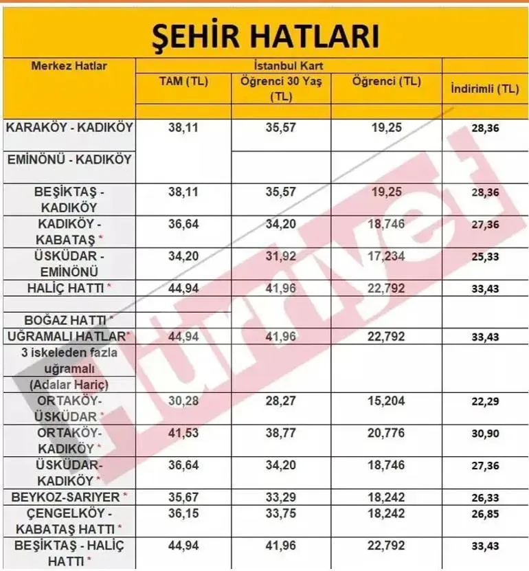 İstanbul toplu ulaşım ücret tarifesi 2025 yılı için ne kadar?